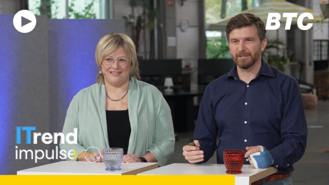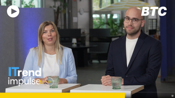 The BTC ITrend Impulse event took place for the fifth time. Our experts presented practical examples, lessons learned, and concrete approaches that you can apply directly to your own business. From responsible AI use to regulatory requirements and digital sovereignty, our agenda covered the key topics of modern IT strategies. You can still get food for thought and insights from the recordings of the approximately 20-minute presentations from the online session.